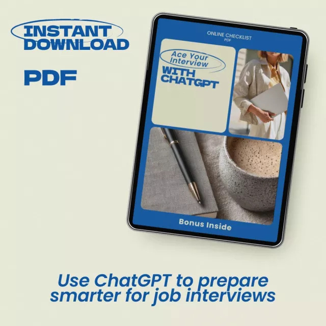 Walking into an interview prepared can make the difference between feeling nervous and feeling unstoppable. Ace Your Interview with ChatGPT is a practical, easy-to-follow checklist designed to help you transform ChatGPT into a powerful interview preparation tool. Instead of guessing what to study or how to practice, this digital checklist shows you exactly how to use chatgpt to prepare for an interview so you can research companies, practice answers, and sharpen your confidence step by step.