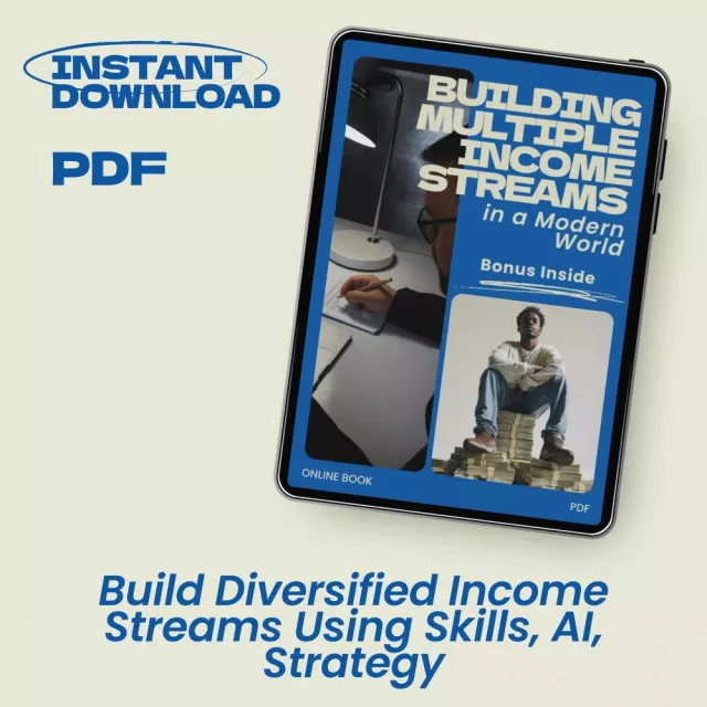 In today’s fast-changing economy, relying on a single job is no longer the only path to financial stability. Building Multiple Income Streams in a Modern World is a practical, easy-to-follow eBook designed to help professionals, freelancers, and creatives learn how to build a portfolio career with multiple income streams. Instead of guessing where to start, this guide walks you step-by-step through identifying your strengths, creating diversified income opportunities, and using modern tools—including AI—to launch and manage multiple ventures without burning out.