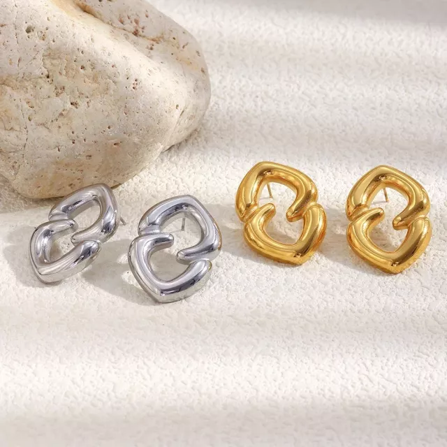 Designed for the modern woman who loves sleek, minimalist style, these stud earrings feature a heart-shaped pattern, symbolizing love and elegance. The PVD gold plating ensures long-lasting shine, while the hypoallergenic material makes them a safe and comfortable choice for sensitive skin.