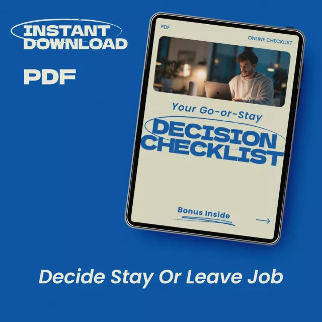 Feeling uncertain about your job can be exhausting. Many professionals struggle with the question of whether to stay in their current role or search for something new. Your Go-or-Stay Decision Checklist is a practical digital tool designed to help you step back, analyze your situation, and make a thoughtful decision about your career. Instead of relying on guesswork or emotional burnout, this structured checklist helps you objectively evaluate your work environment, growth potential, and personal well-being. If you’ve ever searched for guidance on how to know when to stay or leave a company, this downloadable checklist provides a clear and supportive framework to guide your thinking.